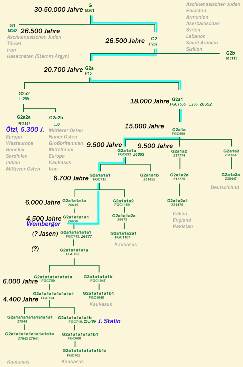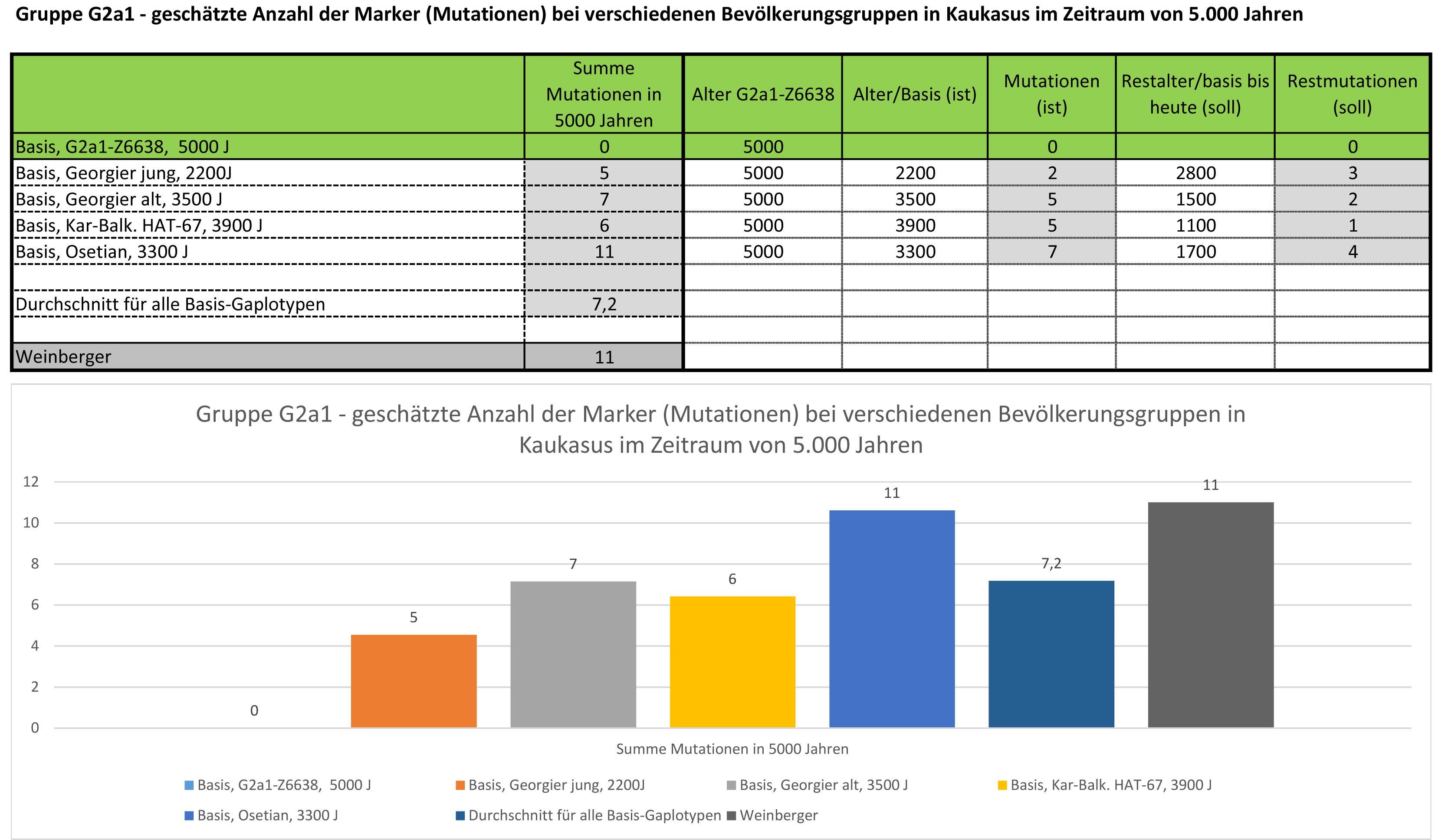 Из этого можно сделать вывод, что ветвь наших предков отделилась от основной ветви Z6638 до того, как примерно 5.000 лет назад родился патриарх-колхидец (первопредок рода всего G2a1 на Кавказе) и он (или его потомки) мигрировал на Кавказ.