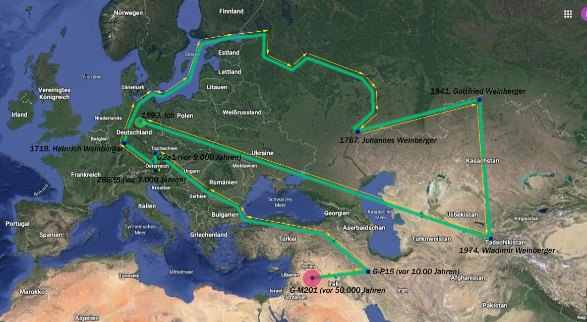 В принципе, выстраивалась довольно логичная цепочка миграции ясов с Кавказа до Будапешта и последующее расселение вдоль реки Дунай в пределах Австро-Венгрии с центром в Тироле и с более поздним ответвлением вдоль Дуная на юго-восток Германии (Бавария) вплоть до города Регенсбург. Возможно и первый известный наш предок Йоханн Хайнрихь Вайнбергер, пришедший в деревню Штайнберг незадолго до его бракосочетания в 1717 году, пришёл именно из этих мест.