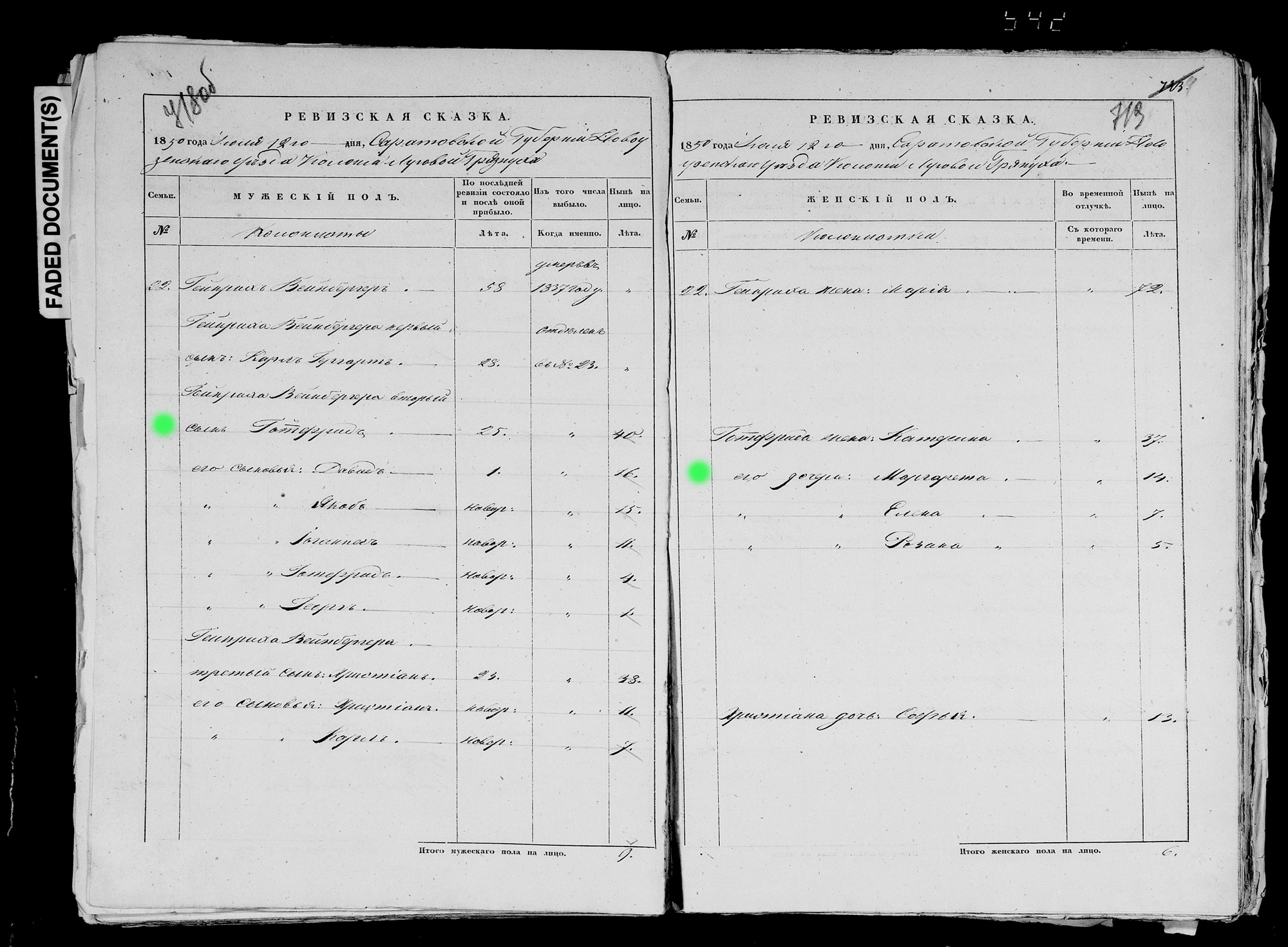 Теперь оставляем всех остальных родственников без внимания и снова концентрируемся на нашей прямой ветке. Я получил от Игоря Плеве посемейную книгу 1874 года, в которую внесён только Хайнрихь "юниор" (1806) как глава семьи и его потомки. Как уже упоминалось выше, второй сын Хайнриха "юниора", так же был назван в честь отца и деда Хайнрихом. Назовём его "внук". Родился Хайнрихь "внук" в 1835м году в Красном Яре и в 15ти летнем возрасте переехал вместе с родителями, дедушкой и бабушкой в Вейценфельд.